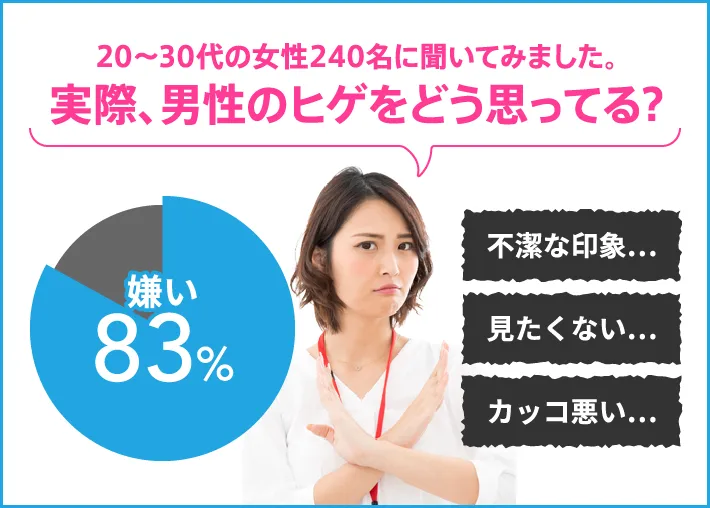 ヒゲは密度が高く、1本1本の毛が太い特徴があります。 皮膚の下に埋まっているヒゲが青く透けている状態が青ヒゲなので、脱毛すると解消されます。