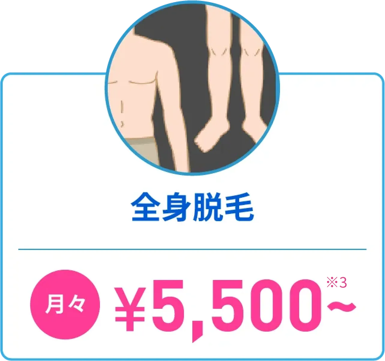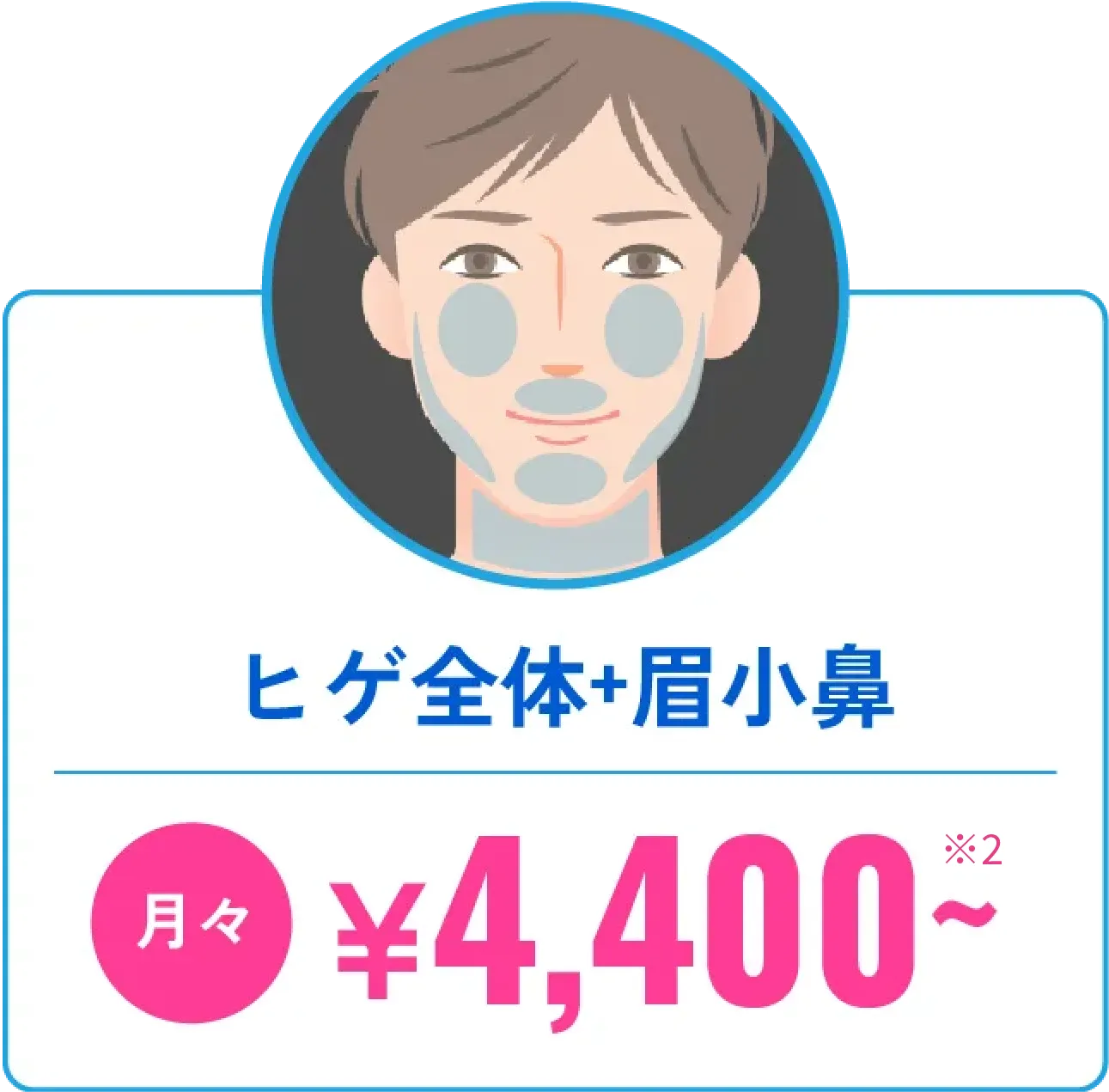 ※1 ヒゲ脱毛(3部位)8回プラン(一括購入金額 46,000円)を提携の信販会社33回払いを利用(頭金0円、2回目以降のお支払い金額)総額58,144円 ※2 ヒゲ脱毛(ヒゲ全体+眉小鼻)8回プラン(一括購入価格 158,430円)を提携の信販会社50回払いを利用(頭金0円、2回目以降のお支払い金額)総額221,802円 ※3 全身脱毛(上半身+下半身)4回プラン(一括購入価格196,800円)を提携の信販会社50回払いを利用(頭金0円、2回目以降のお支払い金額)総額275,520円 ※4 全身脱毛(上半身+下半身)+ヒゲ脱毛(ヒゲ全体)4回プラン(一括購入価格 213,400円)を提携の信販会社50回払いを利用(頭金0円、2回目以降のお支払い金額)総額298,760円 ※5 陰部脱毛(V,I,O,お尻の中の1パーツ)4回プラン(一括購入価格 68,250円)を提携の信販会社50回払いを利用(頭金0円、2回目以降のお支払い金額)総額56,146円