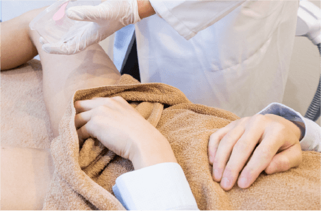 お客様にタオルで陰部を抑えて隠して頂きながら施術いたします。