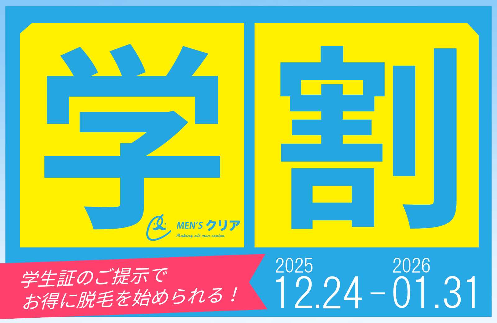 【期間限定】冬休みは「自分磨き」のチャンス!メンズ脱毛サロン「メンズクリア」、学生の“脱毛デビュー”を応援する「冬の学割キャンペーン」を開催